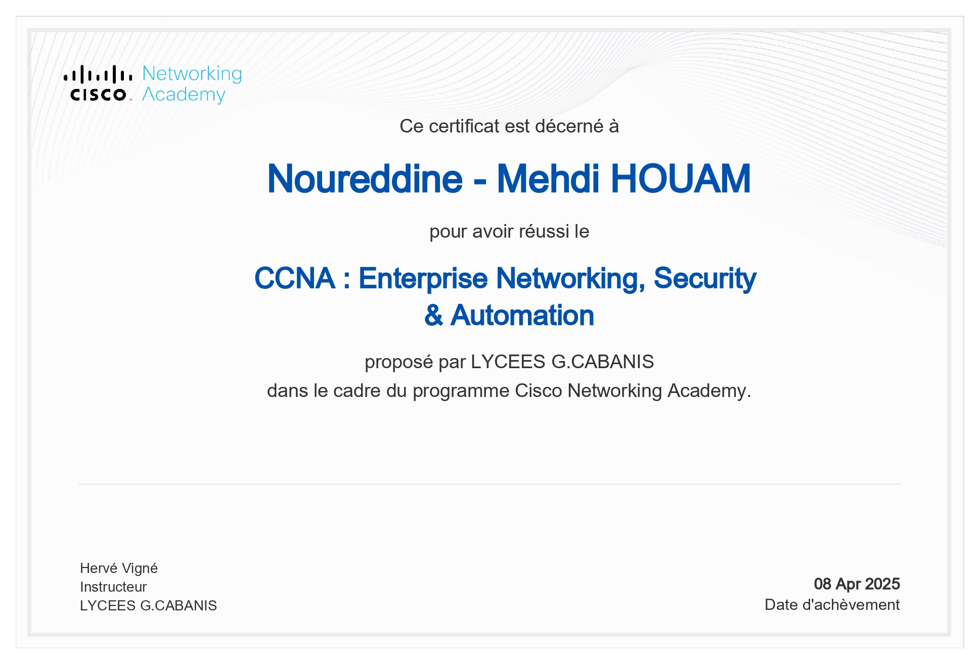 Cisco Networking Academy Validé